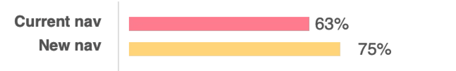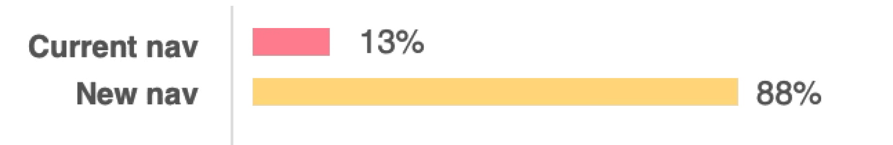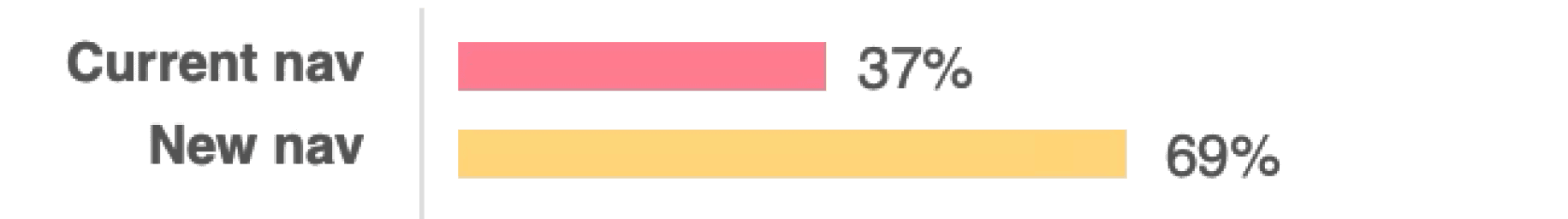 The redesigned navigation significantly improved content discoverability and task success across key customer journeys.