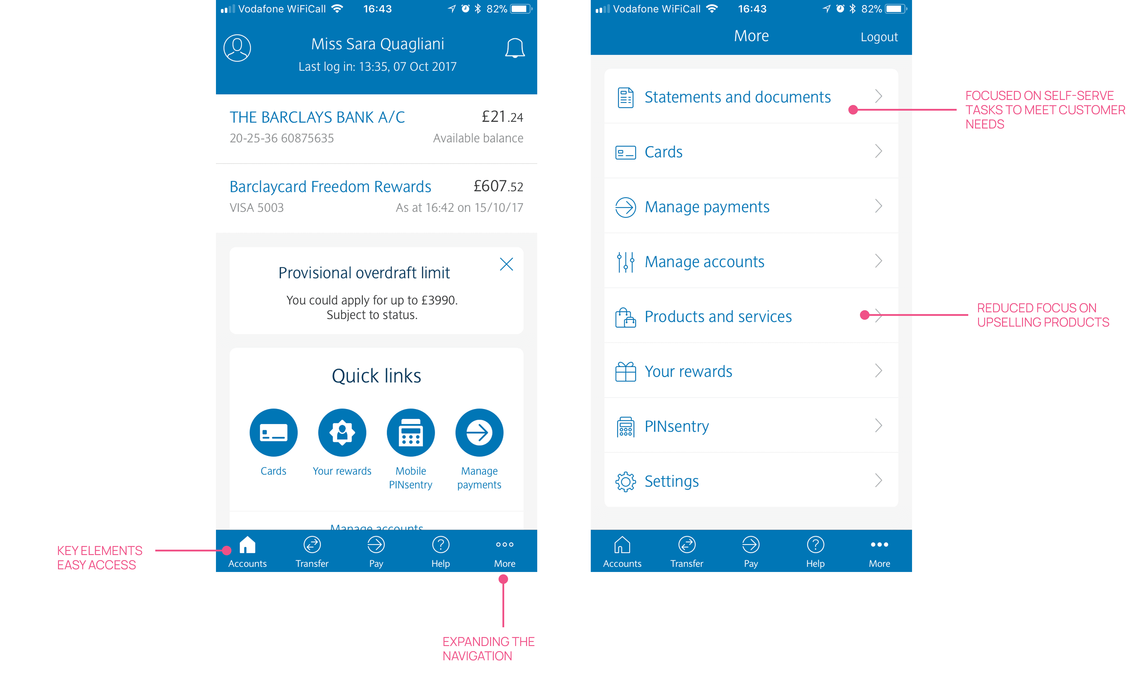 A redesigned navigation framework that shifted from product-led menus to task-focused journeys, helping customers quickly find and complete core banking actions across devices and segments.