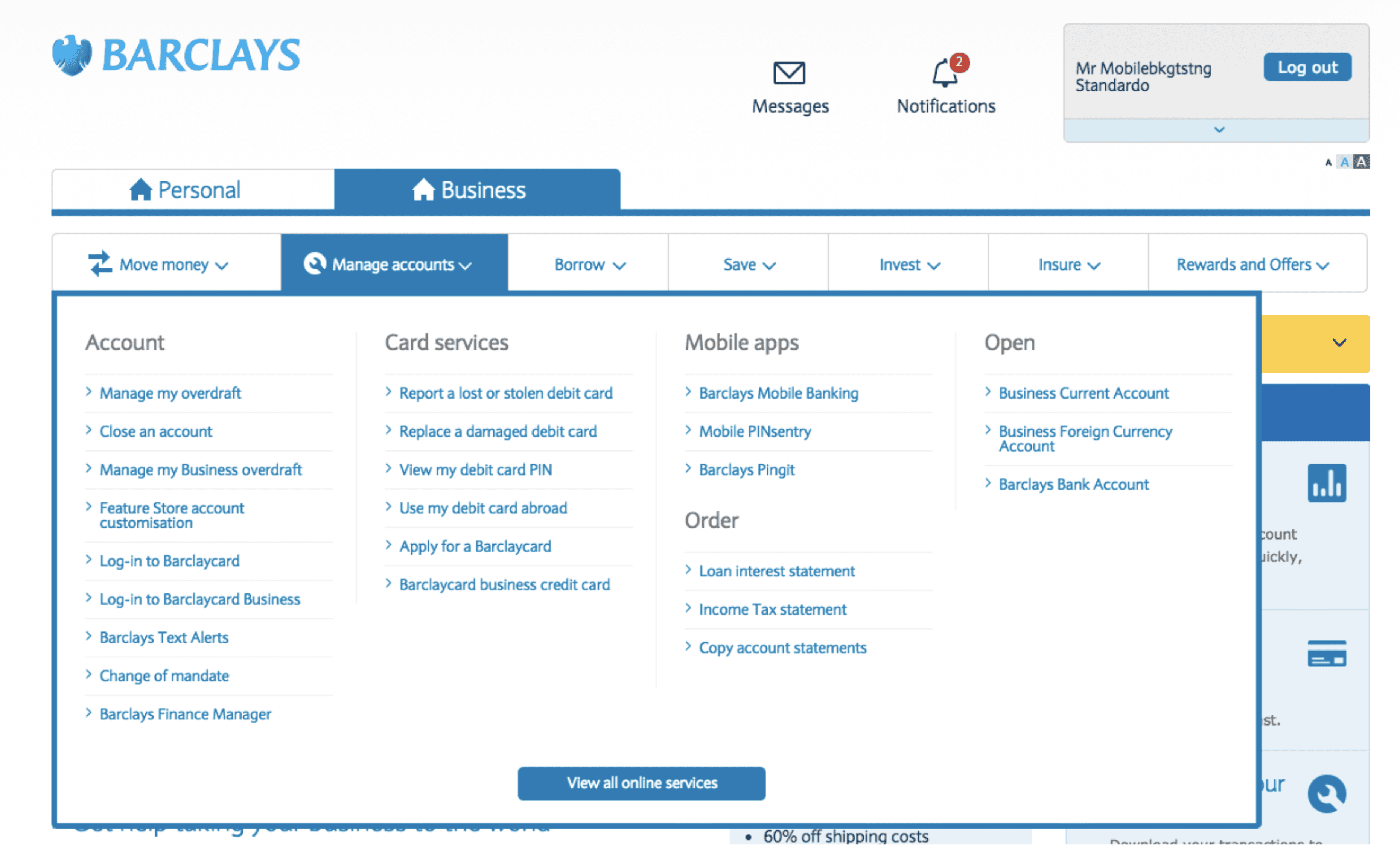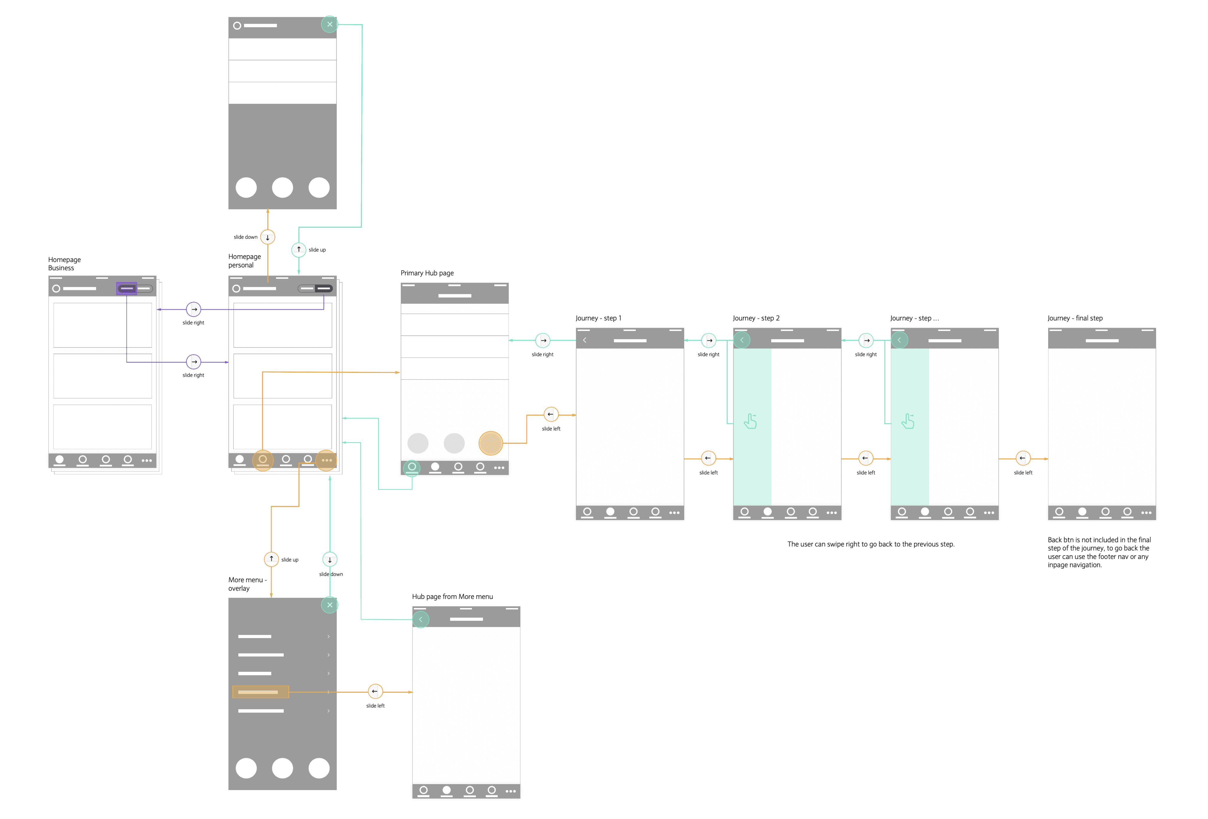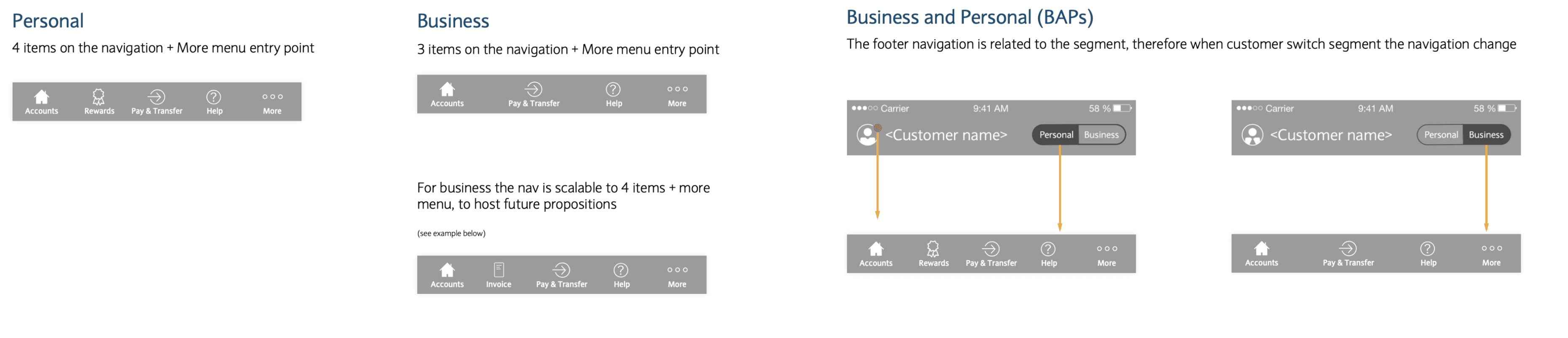 A single navigation framework was applied across Personal and Business customers and translated consistently across mobile and desktop. The underlying structure stayed the same, while task emphasis adapted by context to support multi-account customers and future services.