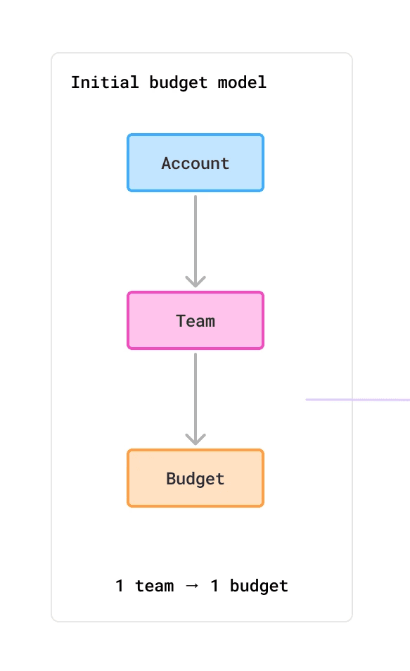 As adoption grew, organisations needed greater flexibility to manage spending across multiple teams and shared budgets. Exploration focused on a model where budgets and teams could be decoupled, enabling more flexible spending structures.